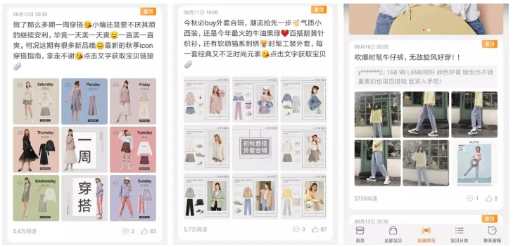 已经有不少商家通过微淘上的“内容种草”掳获了大票粉丝,淘宝女装商家“阔色”就在微淘运营起了店铺内近百万的粉丝。据店铺负责人介绍,他们在微淘上通过精细化和人格化来打造自己的微淘特色,包括在整体视觉风格上的统一、以及一周穿搭、买家秀、搭配指南等固定栏目。“只有创作对粉丝有价值的内容,解决粉丝的痛点,才能吸引更多消费者的阅读。”